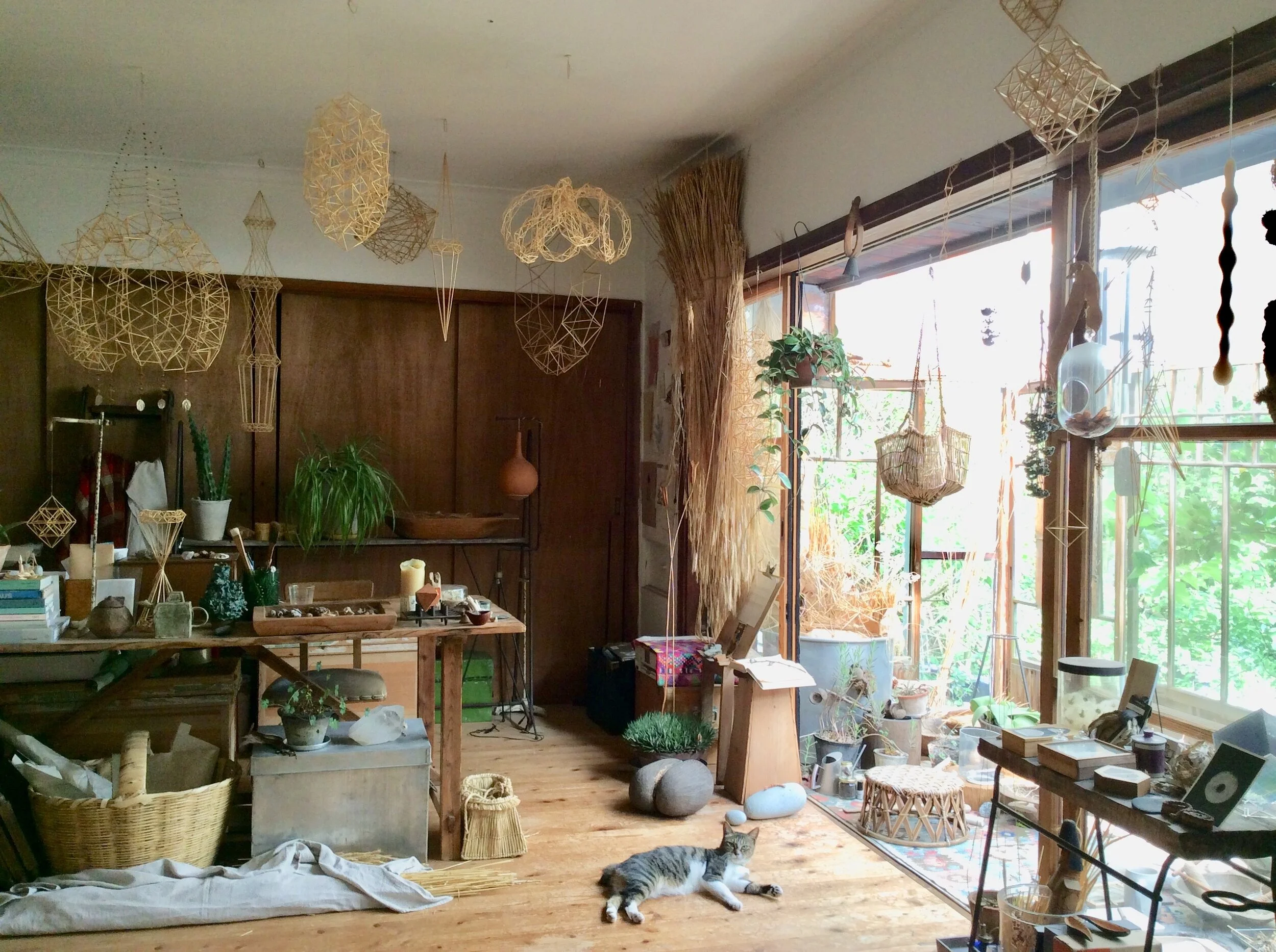 Encountered a Finnish traditional ornament "Himmeli" in 2005 and became the leading person who introduced it to Japan after analyzing the geometry, racial culture and the laws of nature with a unique viewpoint. Became interested in the animism spirituality of farmers who created such beautiful shapes. Inherited the spiritual tradition not only the skills. Gradually, exceeded the frame of Himmeli to enter into an inherent field of creation. From 2012, during communication with nature asking the mystery existing in daily life, a straw sculpture was created. Materials further expanded to ramie and wood to deepen the creative skill for restoration to the natural world. SAKAKI's sculpture existing in the circulation of life ambiguates the boundaries of art and craft, primitive and future to be dissolved, turning back to the spiritual origin of creation.