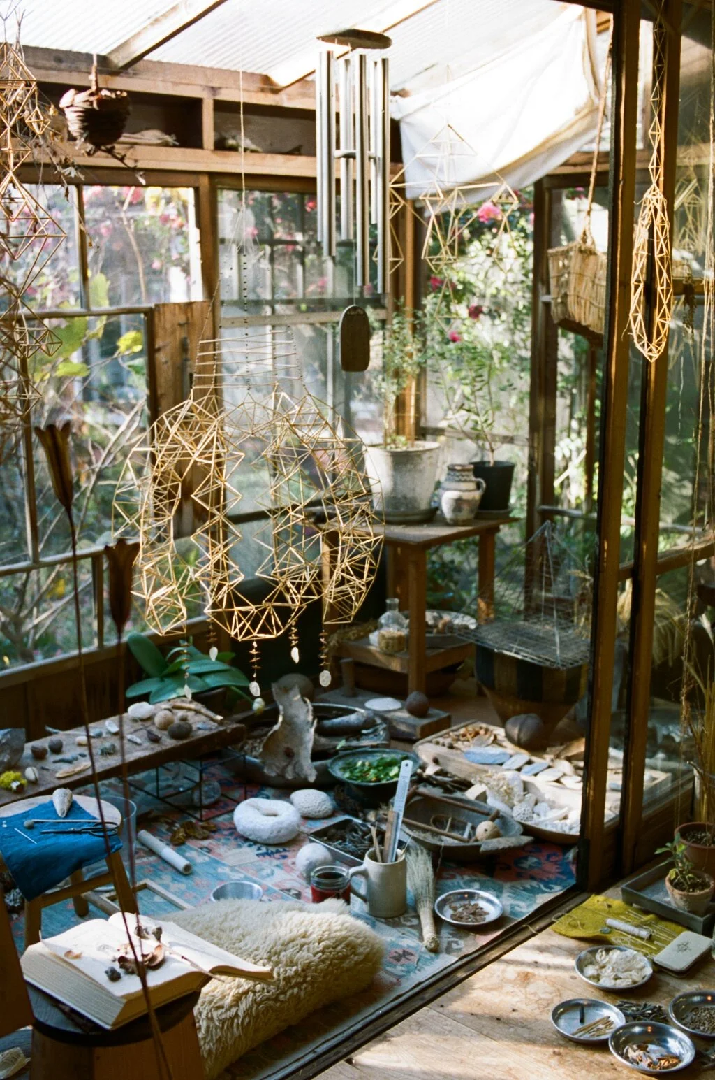 2005年、フィンランドの伝統装飾ヒンメリと出合い、独自の観点でその幾何学形態から民族文化や自然の摂理までを読み解き、日本に紹介した第一人者となる。美しい形状を生み出した農民たちのアニミズム精神性に興味が湧き、技術のみならず精神的伝統も受け継ぐ。次第にヒンメリという枠組を超越し、固有の創造領域に入る。2012年より、生活のかたわらに宿る神秘を問い掲げて自然と対話するうち、麦藁彫刻が生まれる。さらに苧麻や木材へと素材は広がり、自然界への還元を果たす独創的手法が深まる。それは、無心に光を編む超純粋な遊びとも通ずる。生命の循環の中に存在する榊の彫刻は、アートとクラフト、原始と未来、それらの境界線を曖昧にして溶解させ、創造の精神的原点へと立ち返させる。